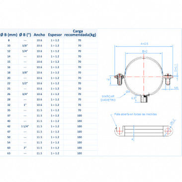 Caja completa de abrazaderas M6. Cantidad según medida.