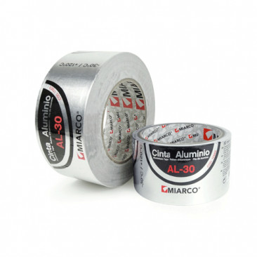 - Cinta de aluminio con adhesivo acrílico de base disolvente y papel siliconado MIARCO AL-30. Disponible en ancho de 50 y 75mm.