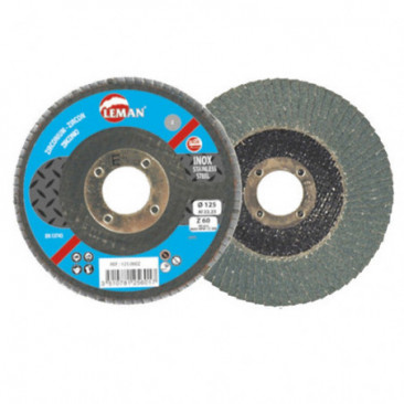 - Disco multiláminas de zirconio para superficies de metal (hierro, soldaduras, inoxidable, fundición) de LEMAN.