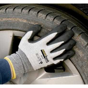 - Gracias al nitrilo arenoso, tenemos gran agarre en seco, húmedo o con aceite, siendo idóneo para trabajos de taller.