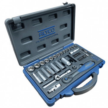 - Juego de vasos y carraca de 3/8" ALYCO 192287 fabricado en acero cromo vanadio. Con carraca de 72 dientes.