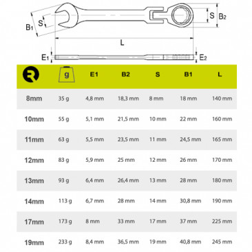 - Disponible en 8, 10, 11, 13, 15, 17 y 19mm.