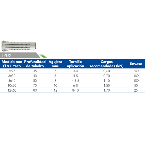 - Para uso con tornillos de rosca madera o rosca chapa(sin broca autotaladrante).